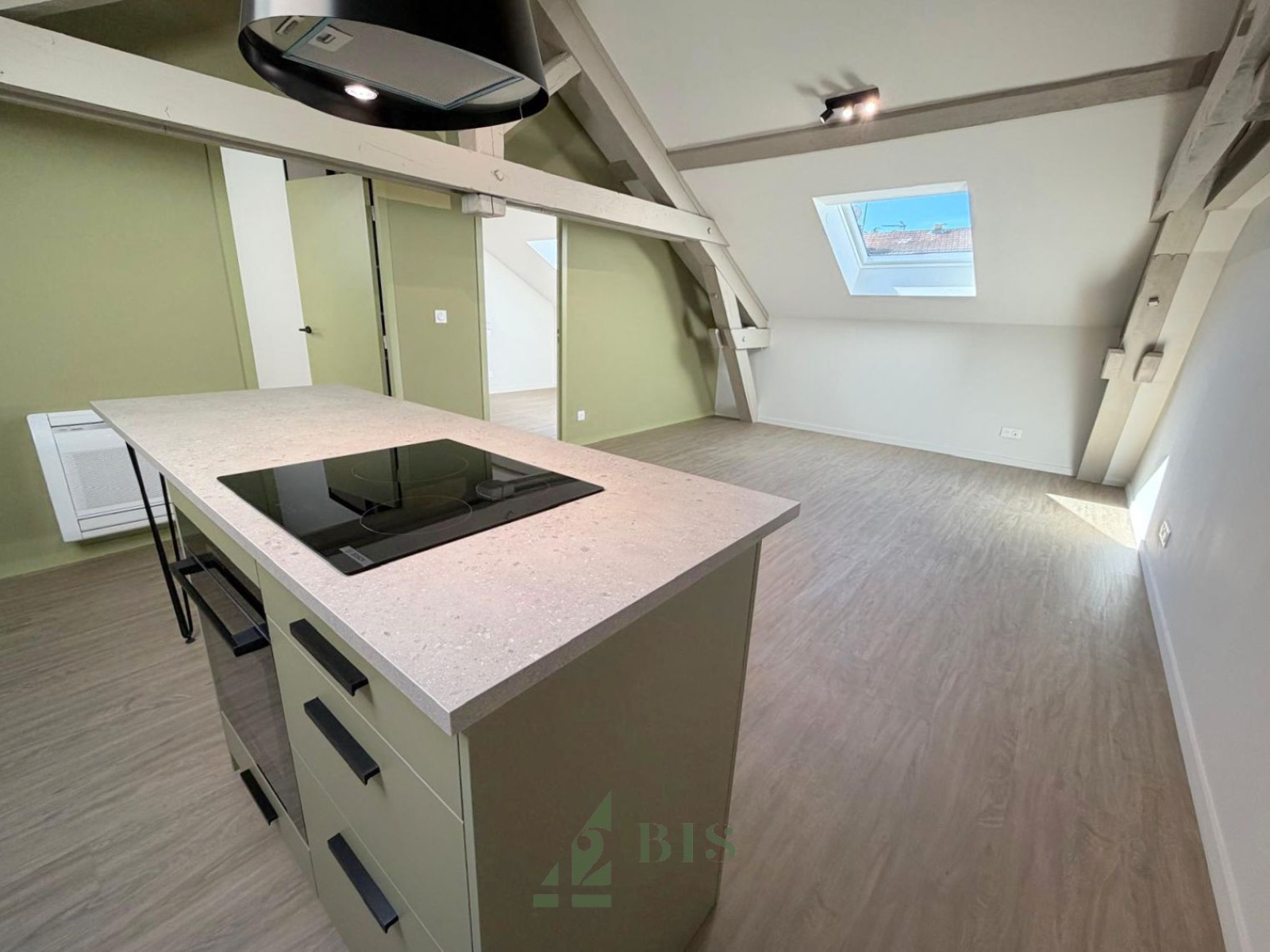 42Bis-Immo vous propose à la location ce bel appartement T3 en centre-ville. Situé au 2ème étage d’une résidence sécurisée, il offre une superficie de 56,39 m² comprenant un séjour, une cuisine équipée, une salle de bains, un WC séparé, deux chambres avec placards. Une cave vient compléter ce bien.