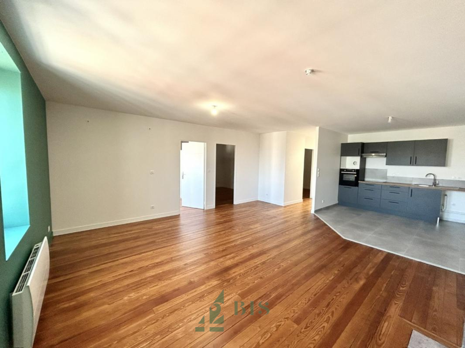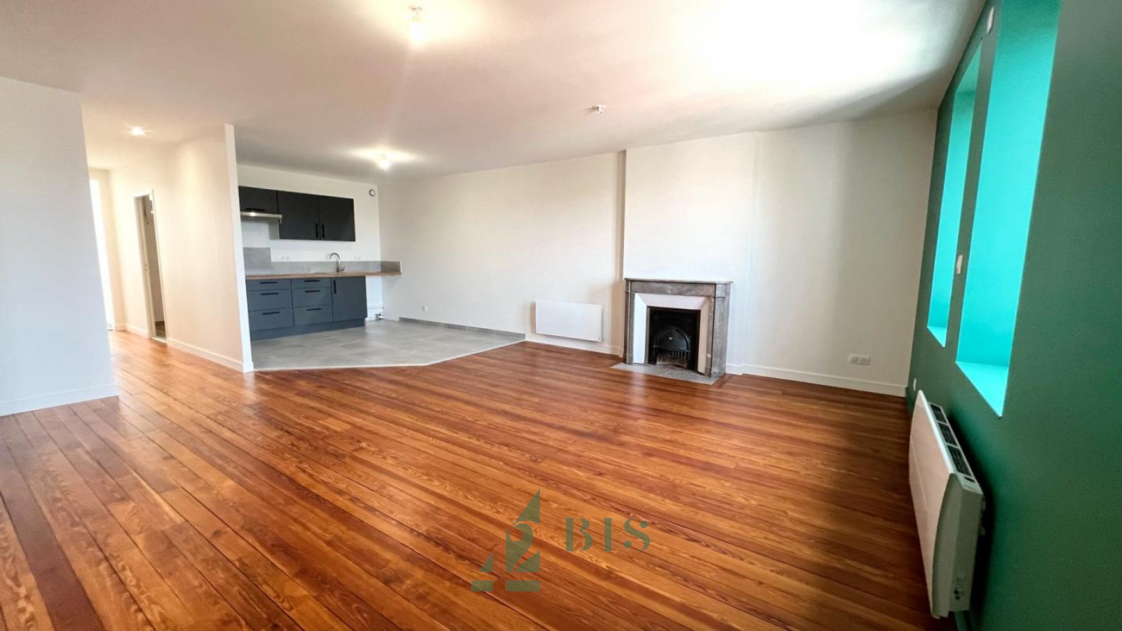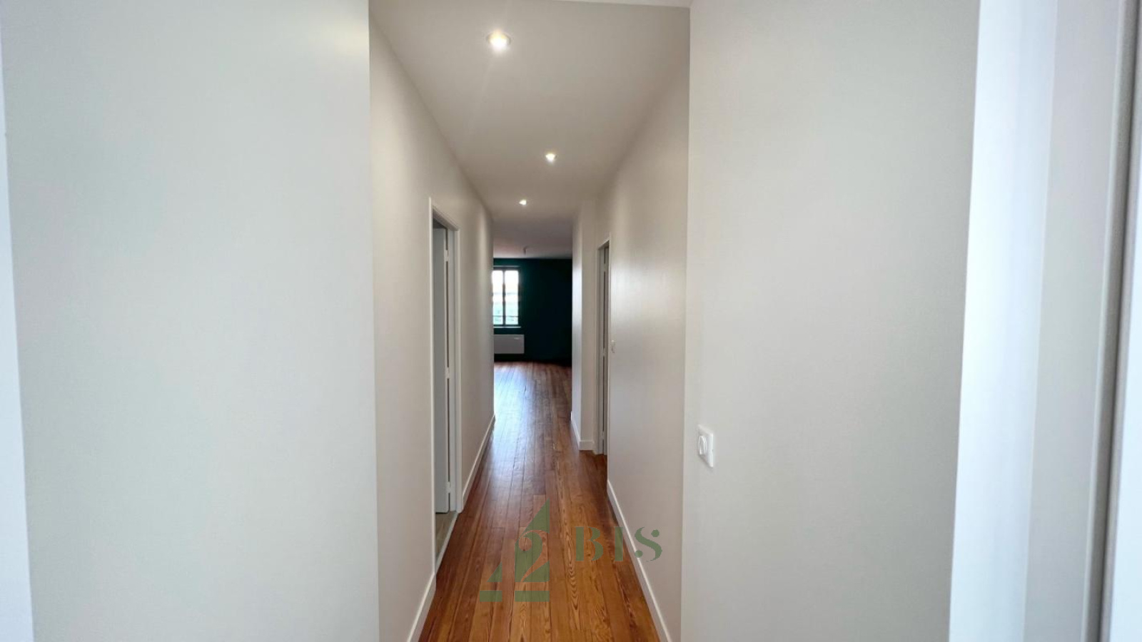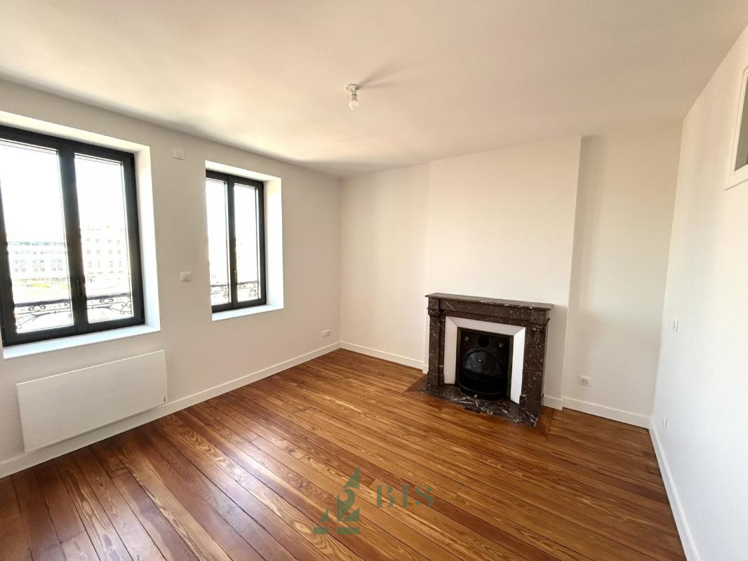 42 Bis immo vous propose ce superbe T4 entièrement neuf dans un bel immeuble du centre ville. Situé au 4ème étage d'un immeuble ancien sécurisé, vous disposez d'une entrée, WC séparés, une superbe salle d'eau avec douche et meuble vasque, un séjour avec parquet ouvert sur une cuisine américaine équipée (four/plaque/hotte/rangements), 3 chambres dont 2 sont en alcôve avec puits de lumière. Chauffage ind élect. Très bonne isolation et fenêtres neuves. DPE C Libre le 15 NOVEMBRE Loyer : 630.00€ + 60.00€ prov/charges DG : 630.00€ Honoraires : 275.00€ dont 70.00€ pour EDL