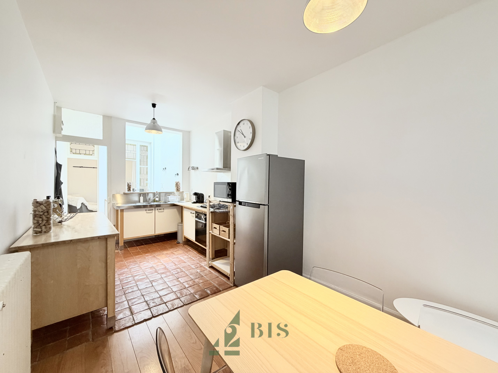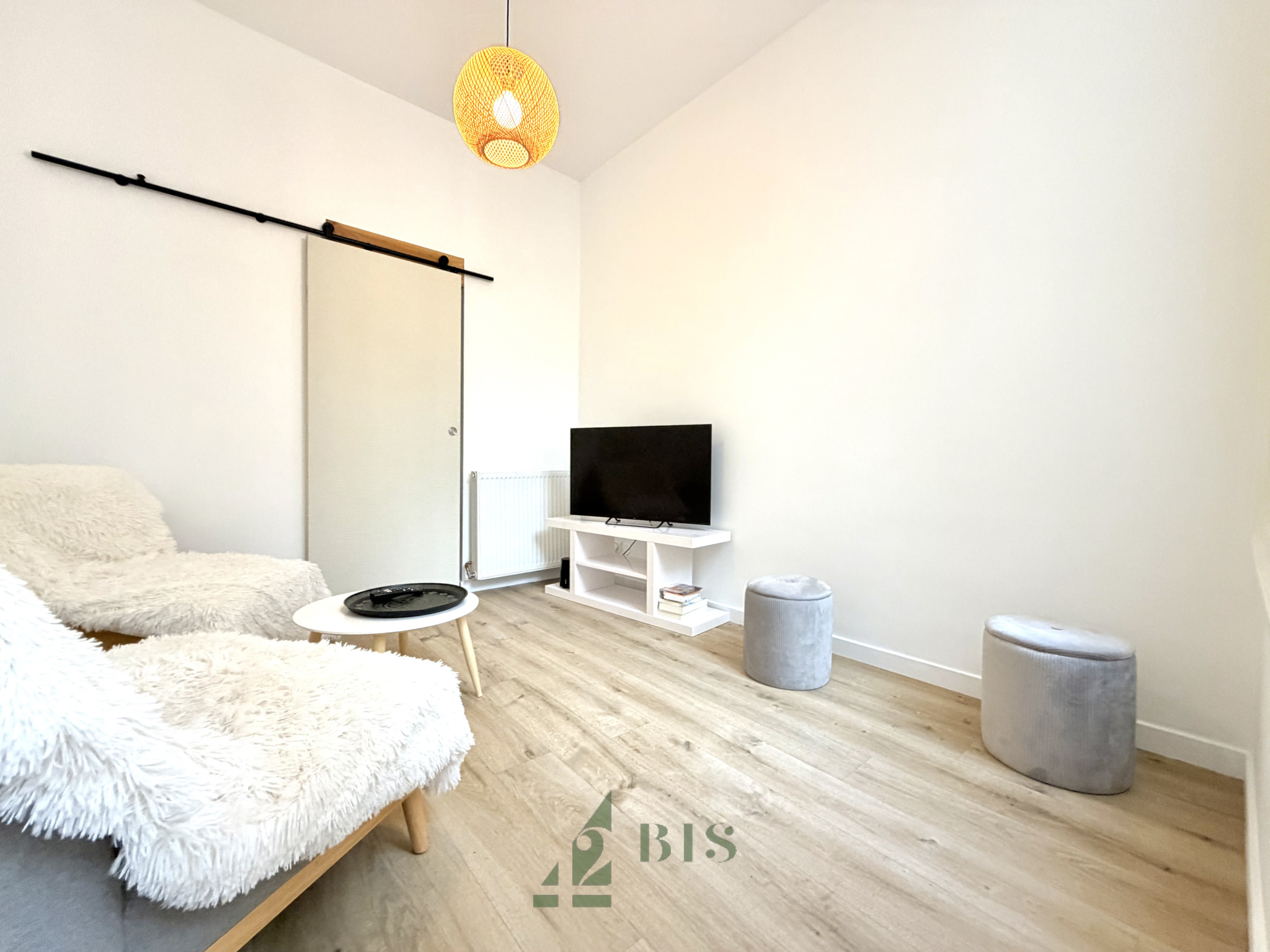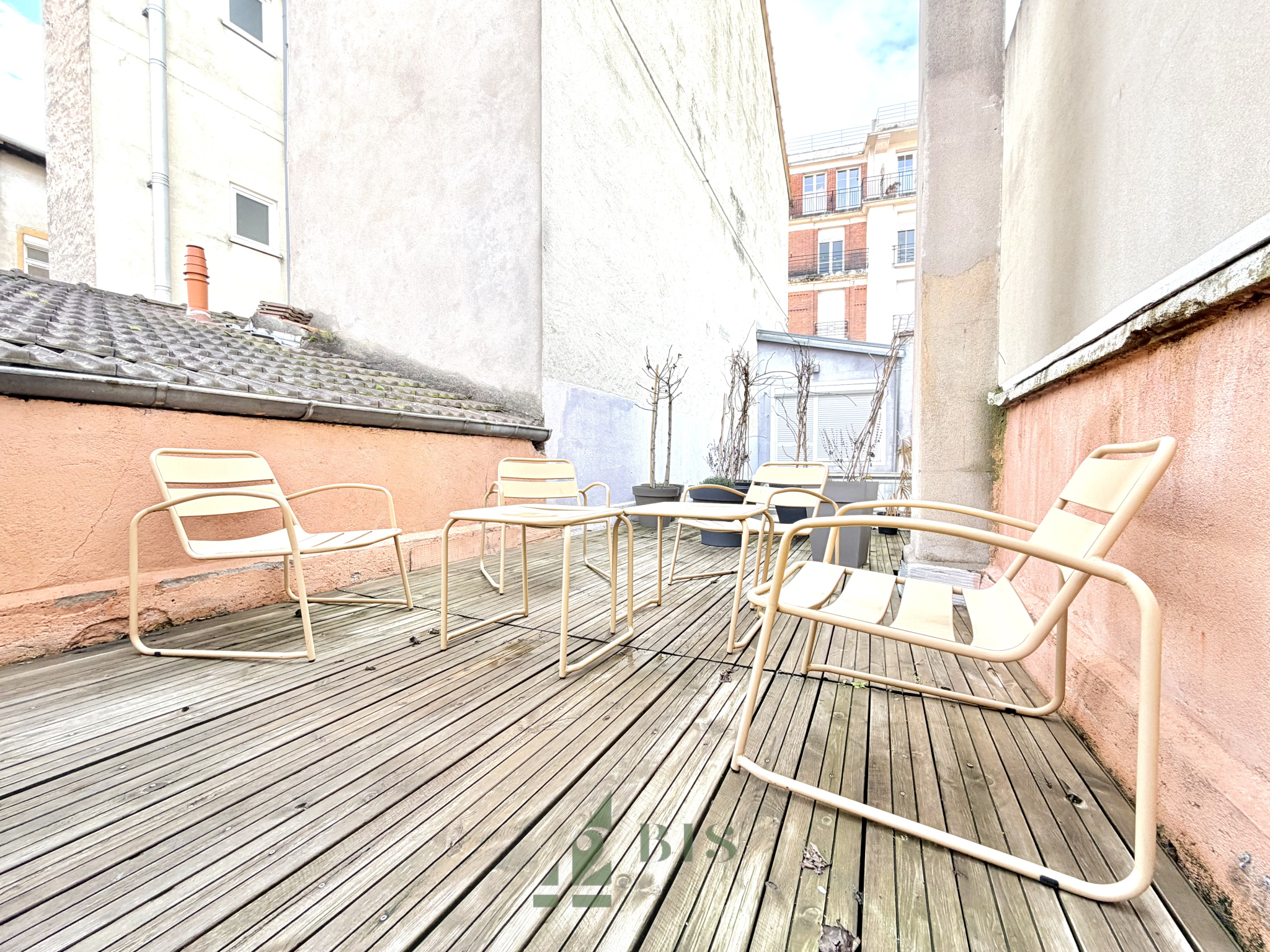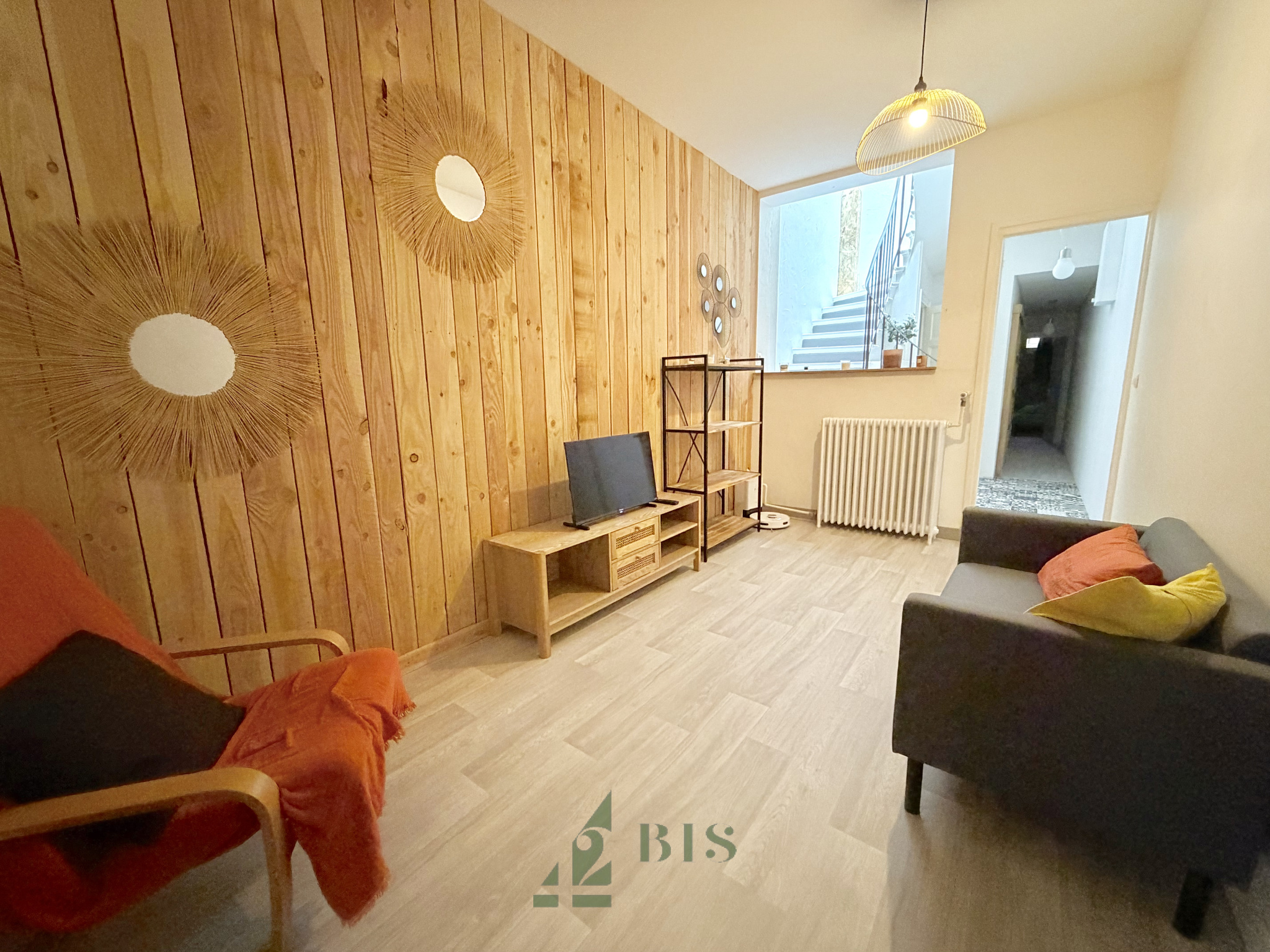 42 Bis immo vous propose ce superbe T3 Duplex entièrement meublé et indépendant avec sa terrasse situé dans le centre ville de Roanne. Vous disposez au rez-de-chaussée d'une entrée, une salle de bain et une chambre avec placard. A l'étage vous retrouverez un salon-séjour, une cuisine équipée (four/ plaque/ hotte/ réfrigirateur/ miros-onde/ rangements) ainsi qu'une chambre.