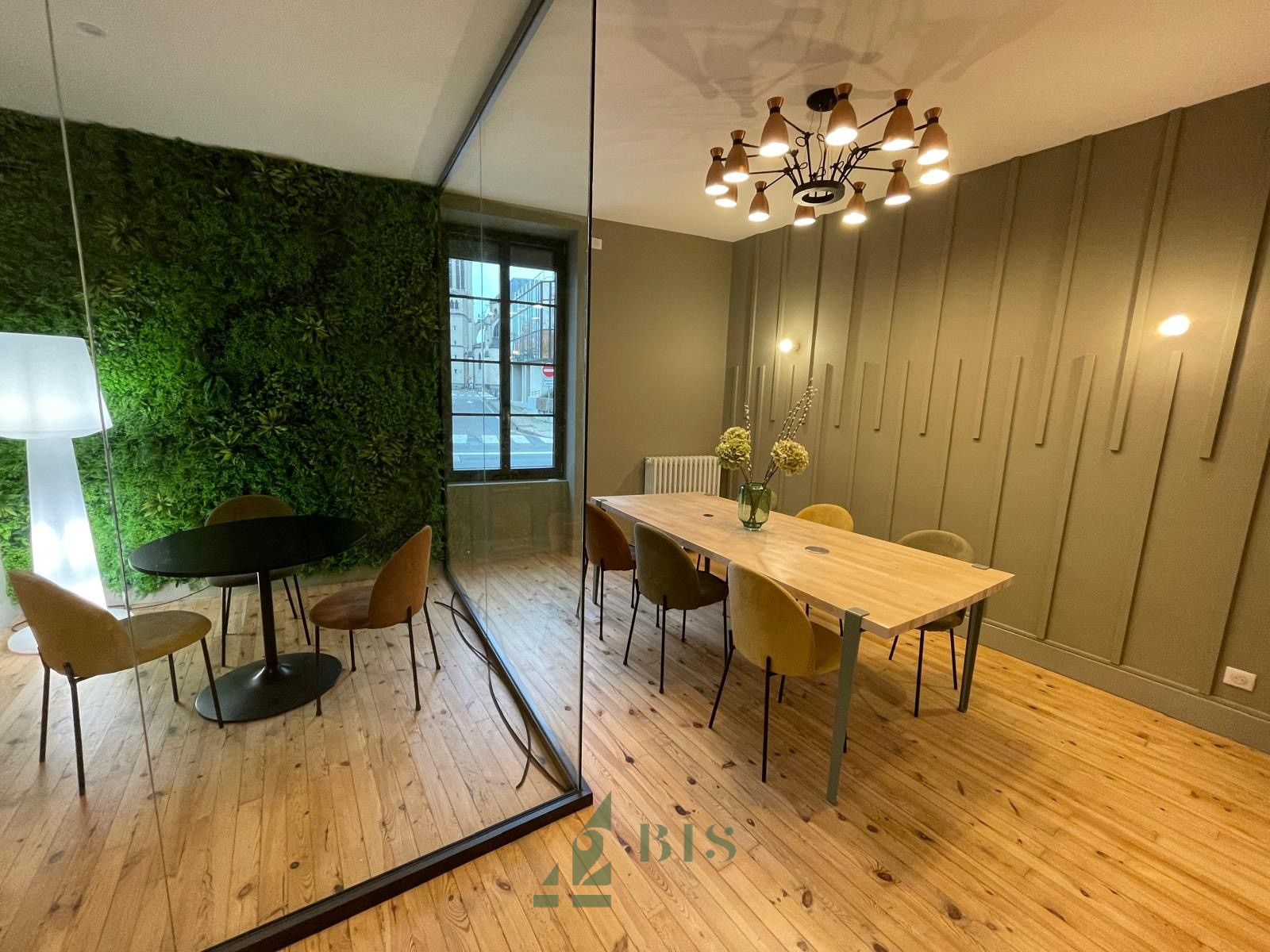 Composés en RDC de trois grand bureaux, une salle de réunion, un local technique, un local d'archives et un espace cuisine et sanitaires.